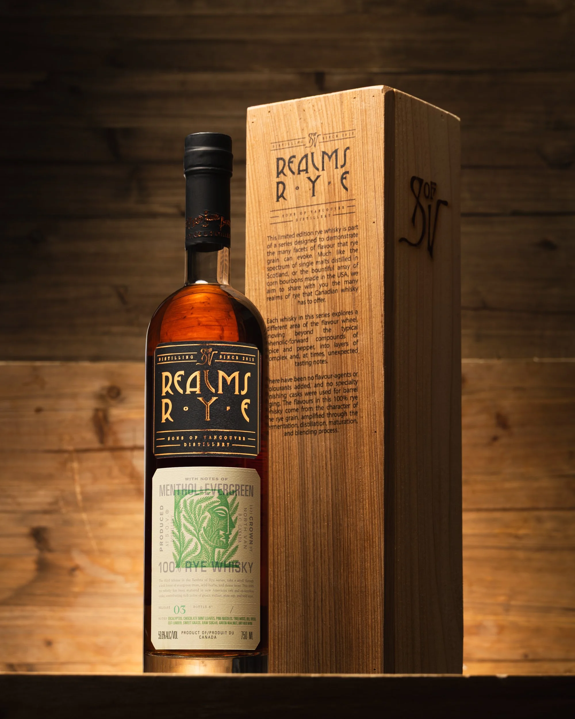 The first release in the Realms of Rye series, this 100% rye whisky was aged in ex-bourbon and new American oak casks. With tasting notes of orange peel, coriander seed, black tea, and raw sugar, this expression marks the beginning of an explorative journey into the diverse flavour spectrum of Canadian rye whisky.